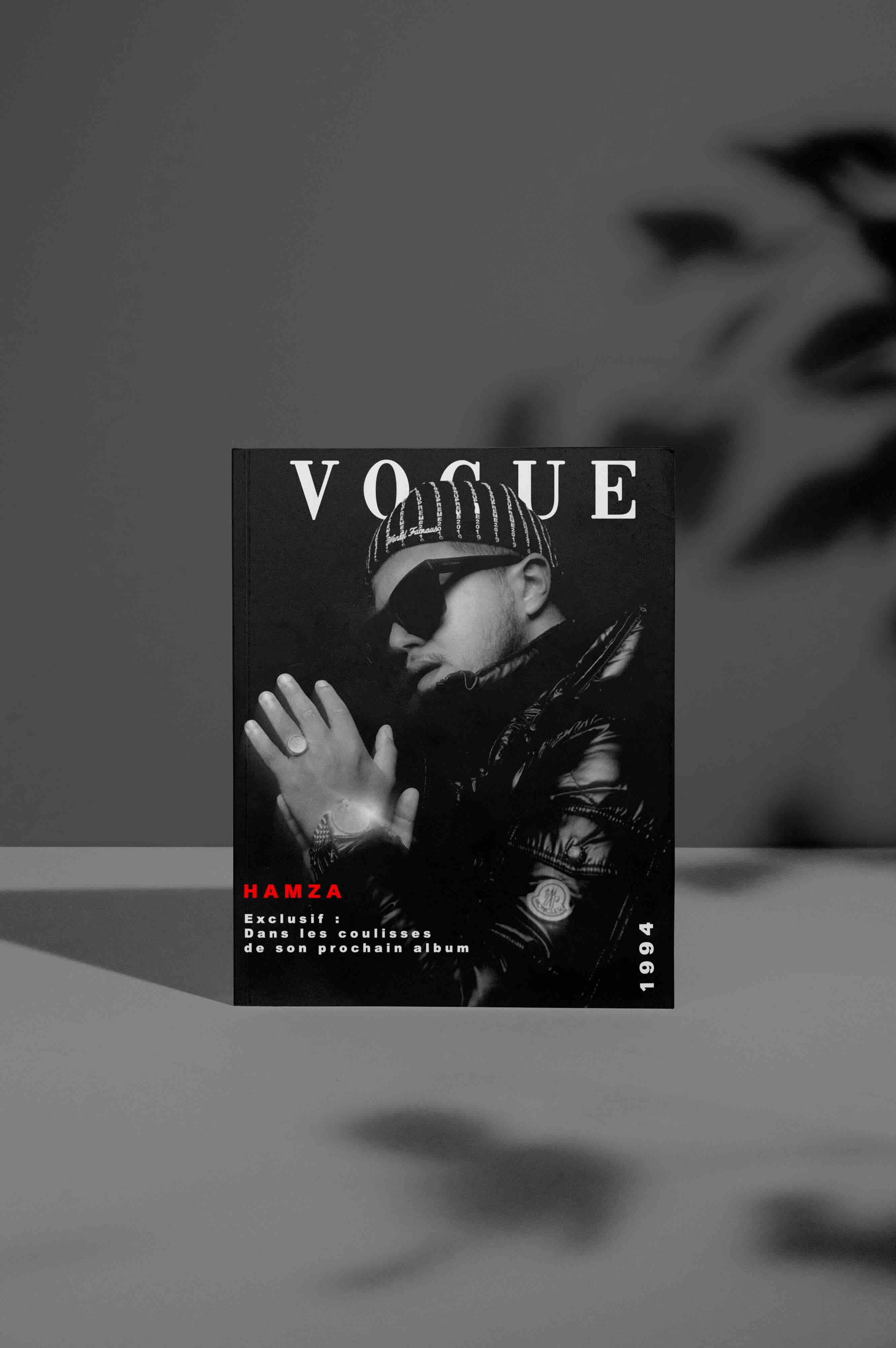 Pour ce projet, j’ai voulu mélanger l’univers de la mode et celui du rap en créant des affiches conceptuelles inspirées des premières de couverture du magazine Vogue. L’idée était de réimaginer ces icônes du rap dans un cadre élégant et artistique, tout en conservant leur style unique et leur identité forte.